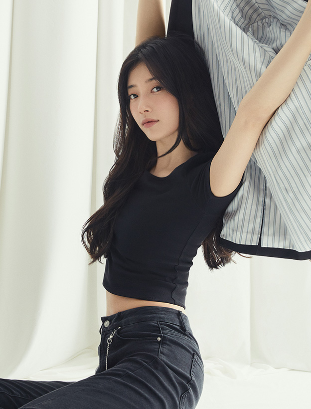GO 앞지퍼 데님 뷔스티에_MEDIUM BLUE